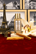 Dès les premières secondes, le lys dévoile son éclat blanc et pur, à la fois floral et soyeux, magnifié par les facettes douces et boisées de l’amyris. Le cœur du parfum s’installe dans une atmosphère feutrée, grâce à la rondeur des notes poudrées et à l’ambrette, qui diffuse une sensualité musquée, presque seconde peau. L’ambroxan vient subtilement illuminer l’ensemble, lui apportant une fraîcheur cristalline et une tenue prolongée, sans jamais écraser la finesse de la composition.